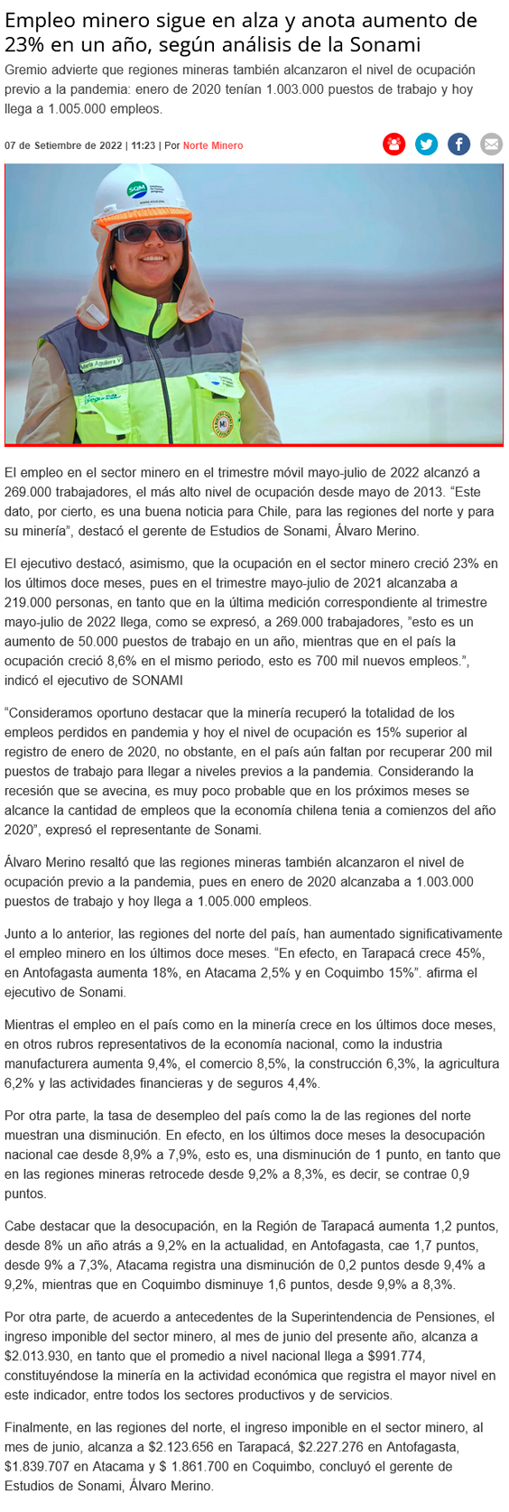 Empleo en el sector minero creció un 23% en 12 meses: nivel más alto de ocupación desde 2013 - (biobiochile online)