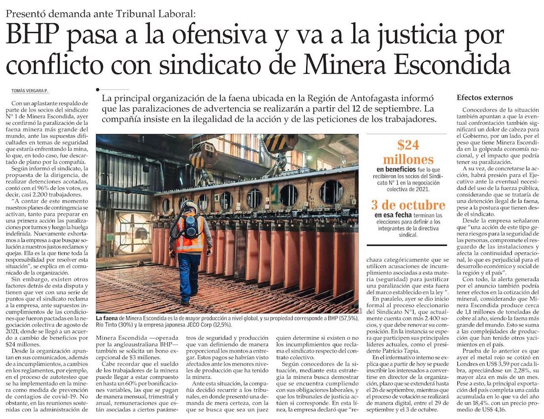 Minera Escondida se refiere a votación que aprueba huelga del Sindicato N°1 de sus Trabajadores - (mch.cl)