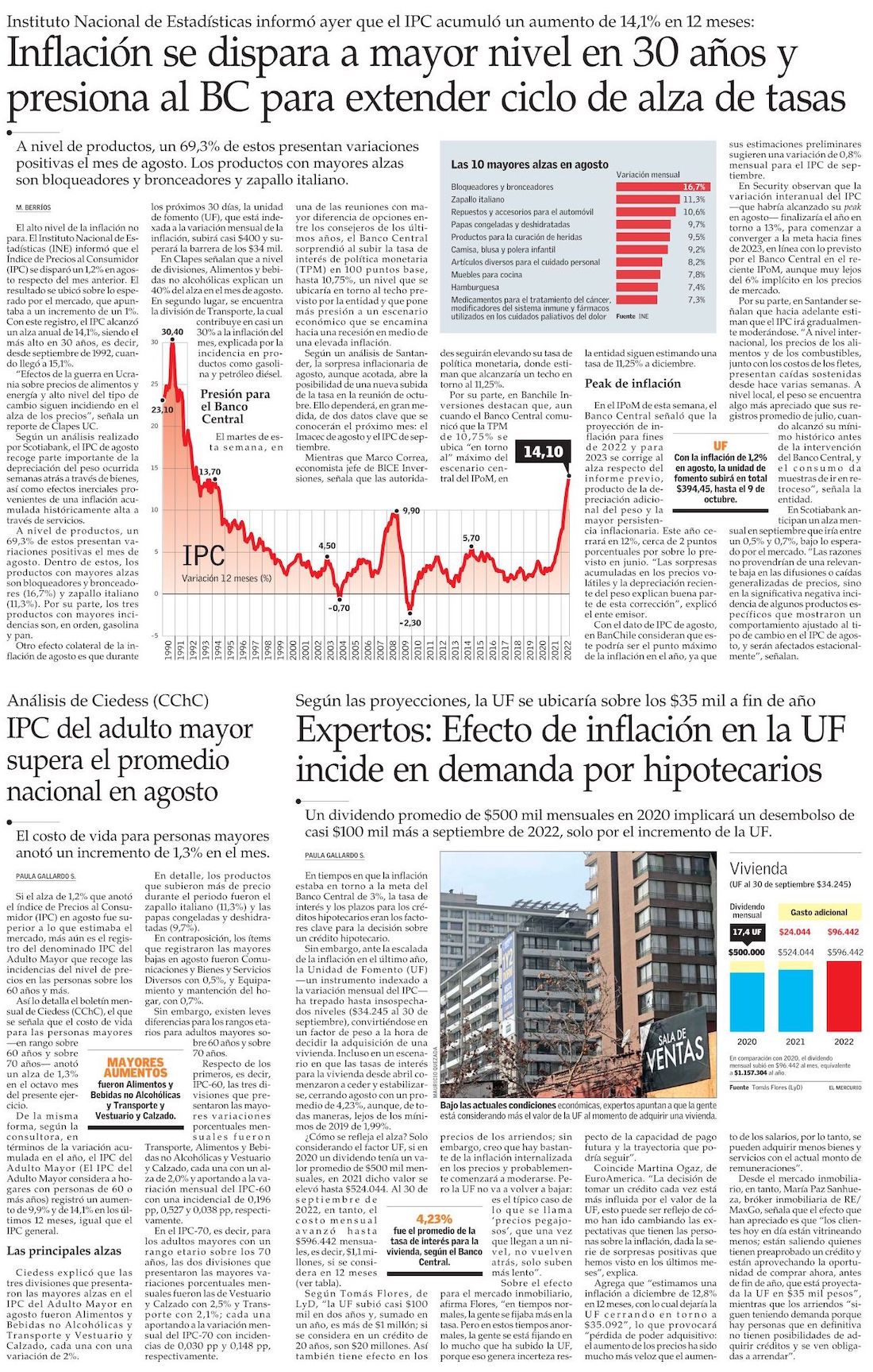 Inflación anual llega en agosto a su nivel más alto en 30 años y pone en jaque la proyección 2022 del Banco Central - (Pulso)