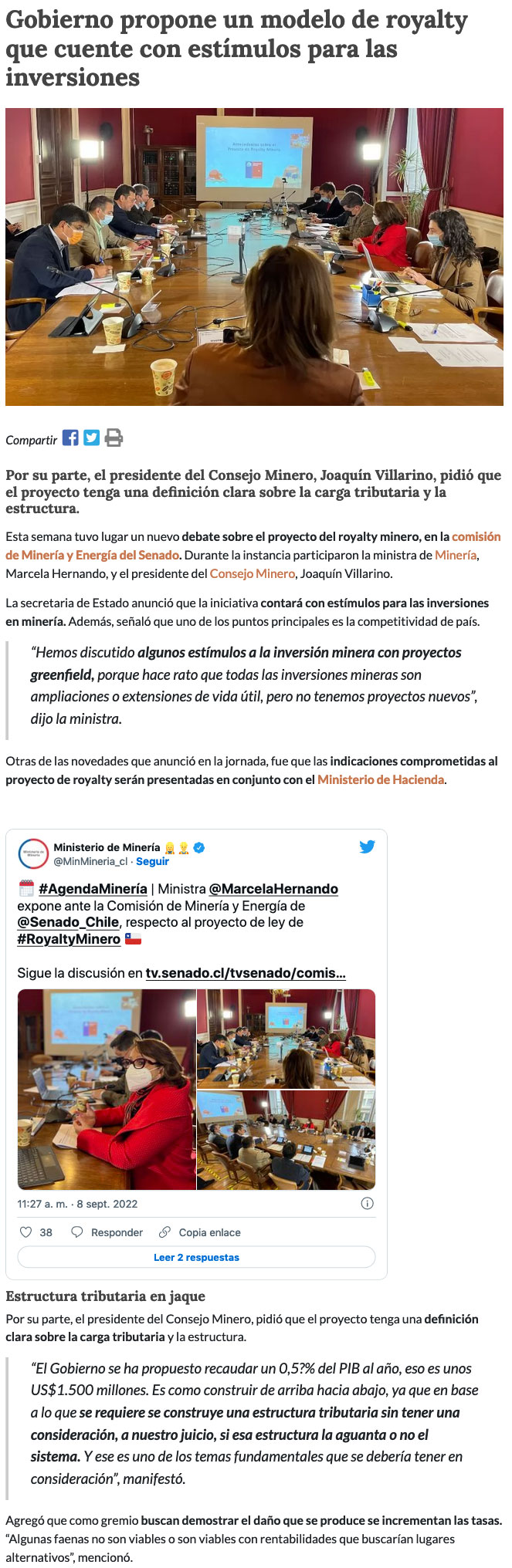 Gobierno asegura que el royalty incorporará estímulos para nuevas inversiones mineras - (chilemineria.cl)
