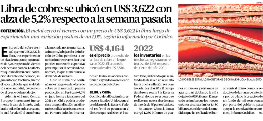 Riesgos en la oferta de cobre en el mercado impulsan al alza el precio del metal - (mch.cl)