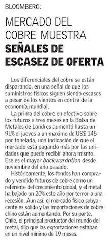 Riesgos en la oferta de cobre en el mercado impulsan al alza el precio del metal - (mch.cl)