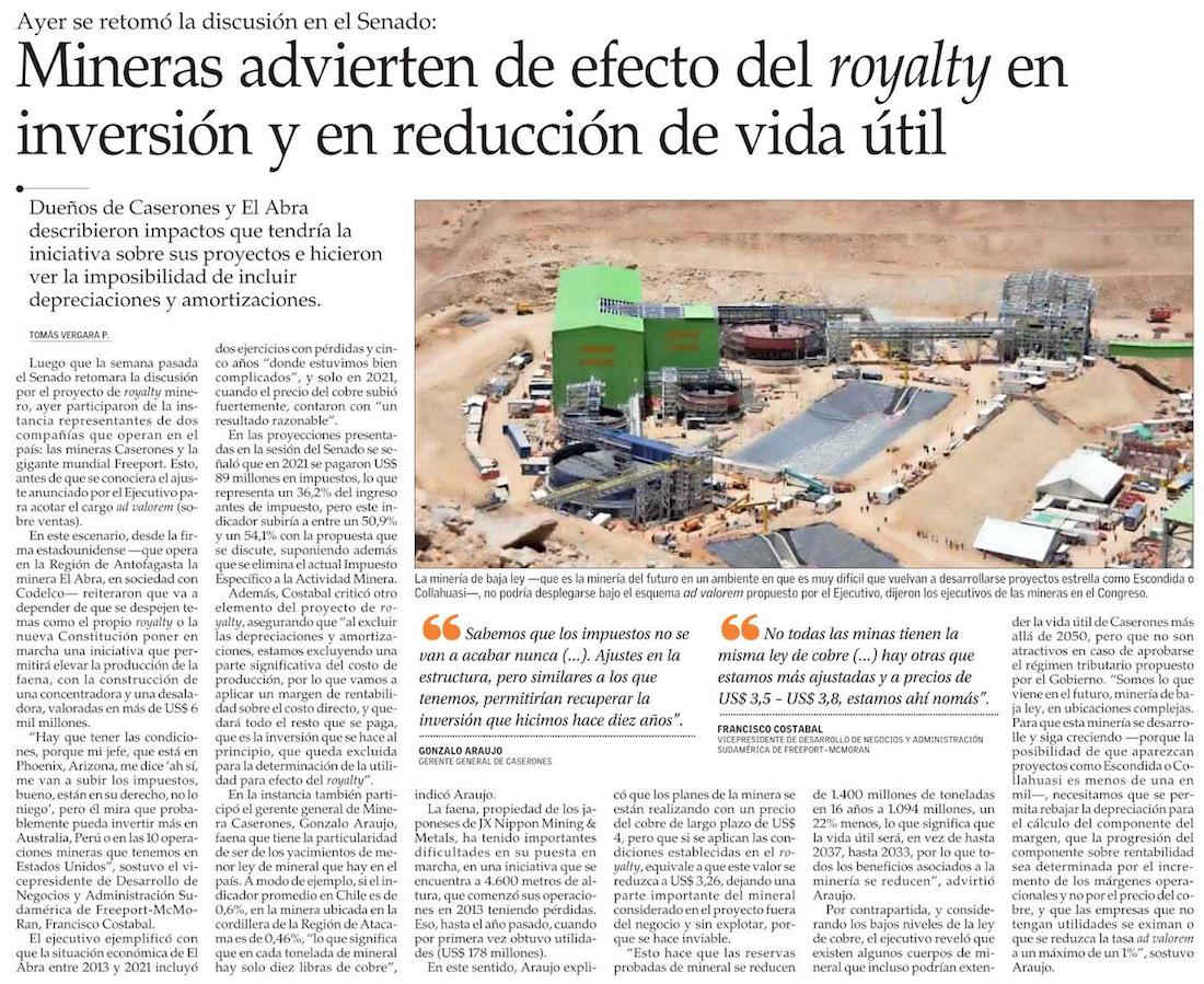 Royalty: Caserones y Freeport destacan en el Senado el aporte de la minería - (Diario Financiero)