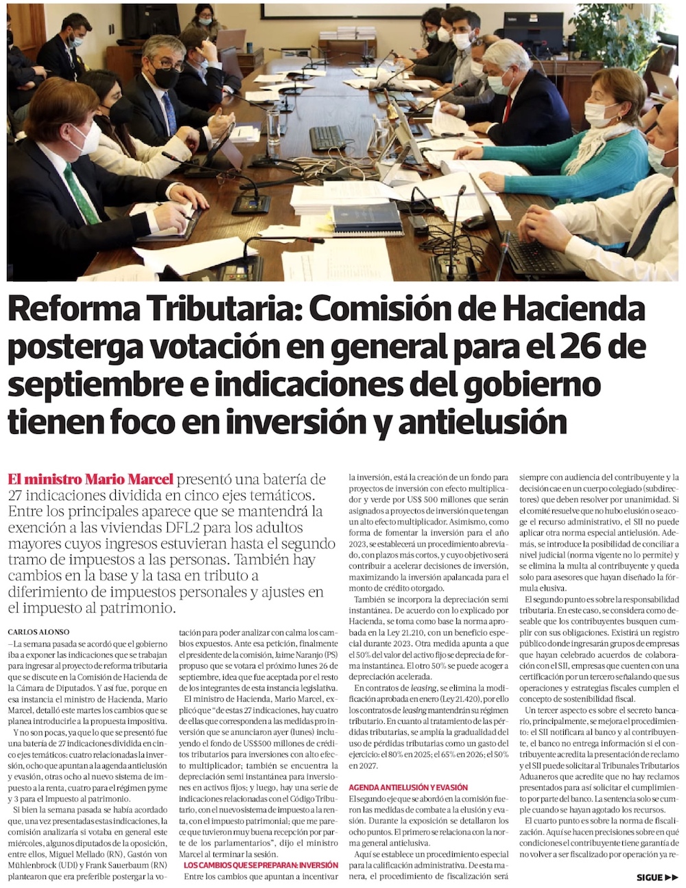 Marcel anticipa paquete de 27 indicaciones a reforma tributaria con cambios profundos en exención a DFL 2 e impuesto al patrimonio - (El Mercurio de Santiago)