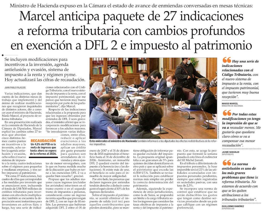 Reforma Tributaria: Comisión de Hacienda posterga votación en general para el 26 de septiembre e indicaciones del gobierno tienen foco en inversión y antielusión - (Pulso)