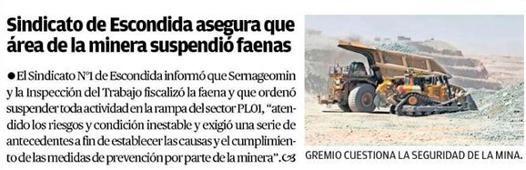 Sindicato anuncia que parte de las faenas en Escondida fueron suspendidas por parte de la autoridad y empresa refuta - (Pulso Online)