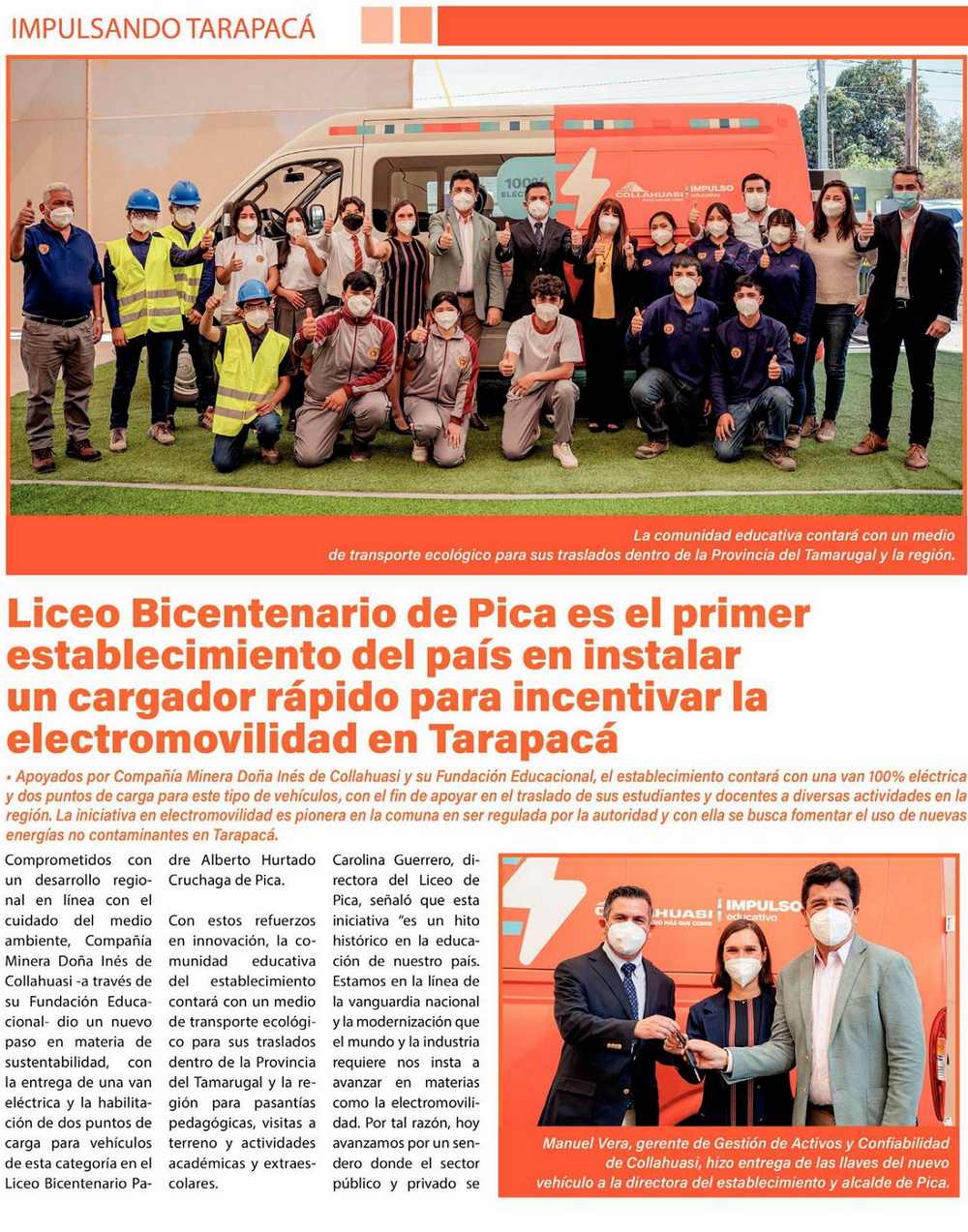 El primero del país: Liceo Bicentenario de Pica contará con van eléctrica para traslado de alumnos - (biobiochile online)