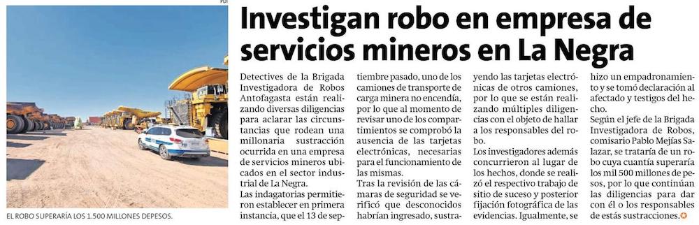 PDI investiga robo en empresa de La Negra por $1.500 millones - (El Mercurio de Antofagasta)