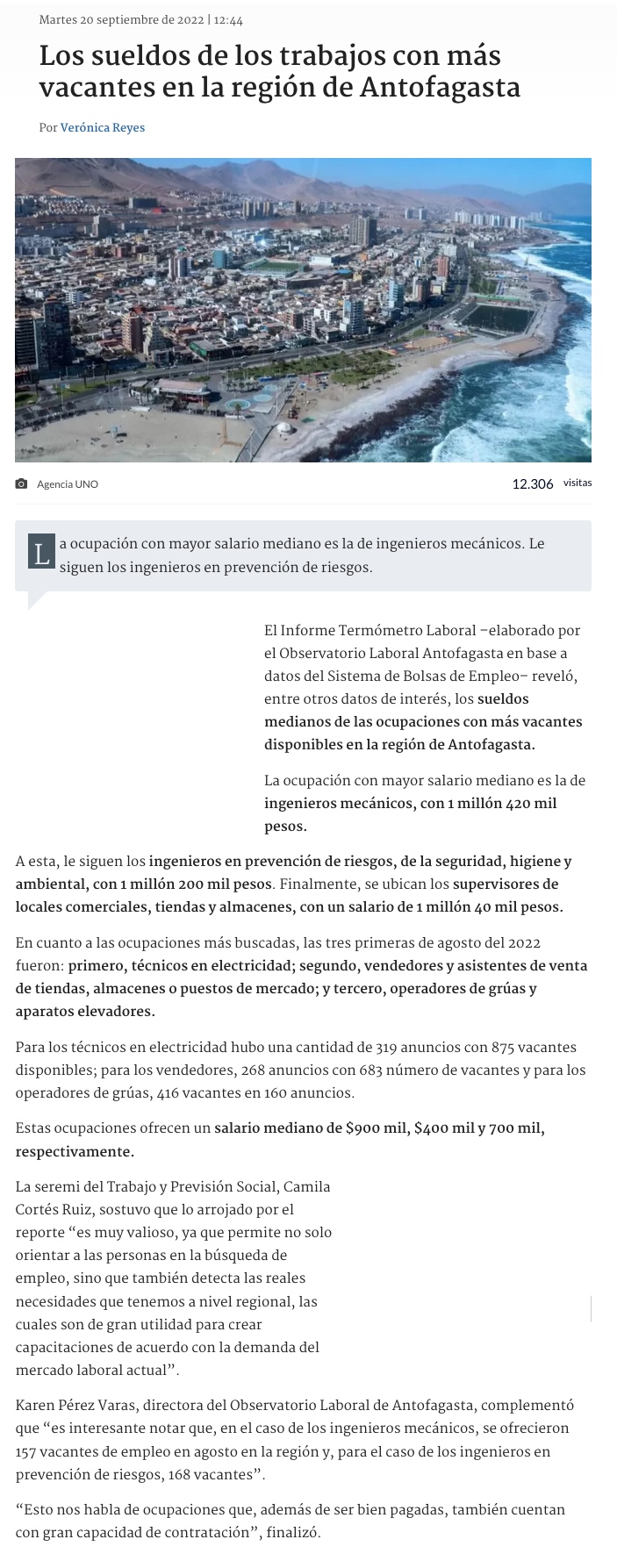 Dan a conocer los 15 empleos mejores pagados en la región - (Estrella de Antofagasta)