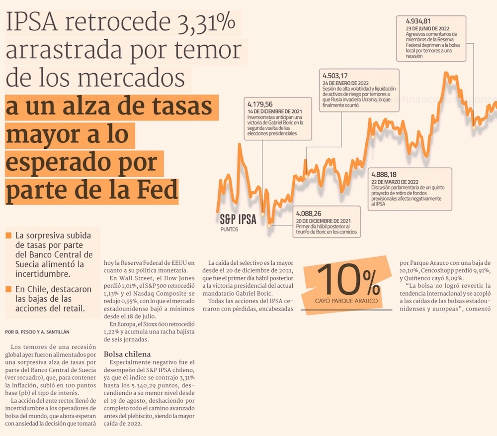 IPSA vive peor sesión del año tras nota de Moody's y por la Fed - (El Mercurio de Santiago)