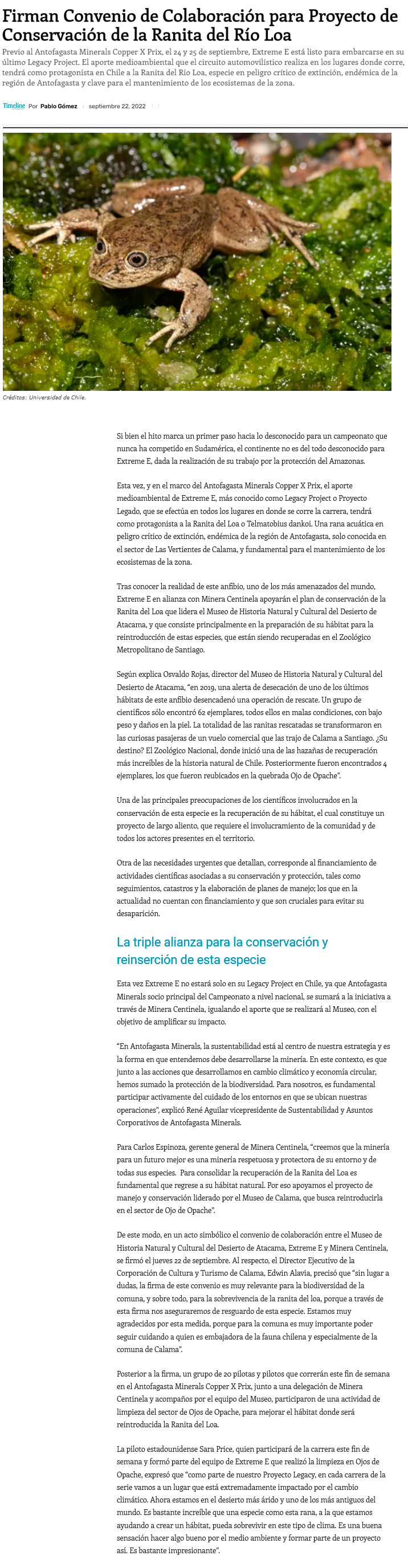 Firma de convenio impulsará proyecto de conservación de Ranita del Río Loa - (El Mercurio de Calama)