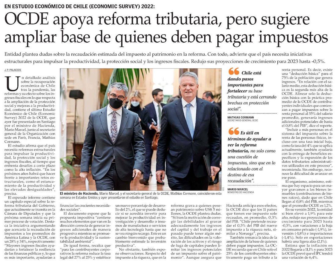 Espaldarazo de la OCDE a reforma de Marcel: “Ingresos tributarios de Chile son muy bajos” - (La Segunda)