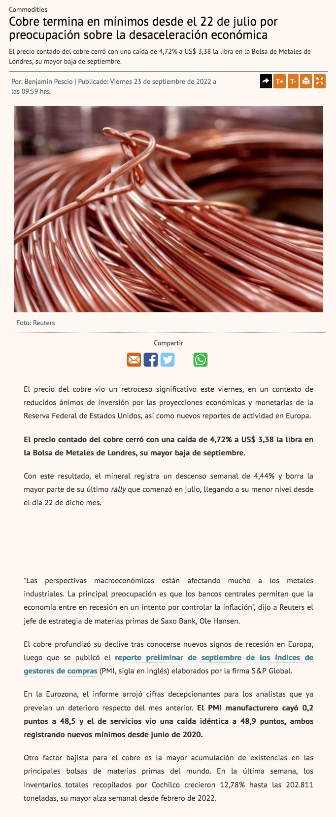 Dólar rebelde: Los impactos de la Fed, el cobre y Putin - (Diario Financiero)