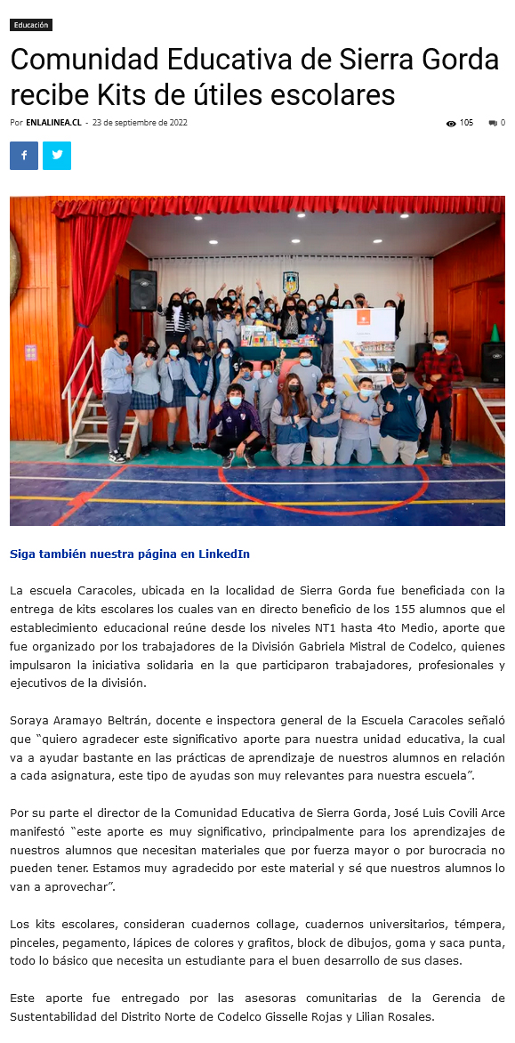 Escolares de Sierra Gorda recibieron útiles - (Estrella de Antofagasta)