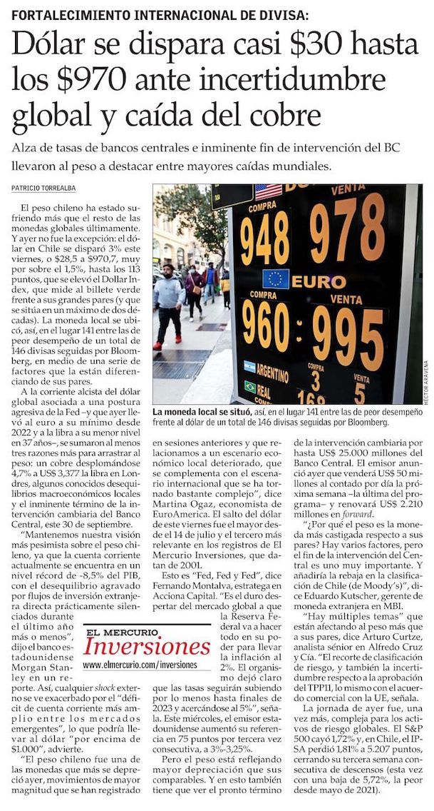Dólar rebelde: Los impactos de la Fed, el cobre y Putin - (Diario Financiero)