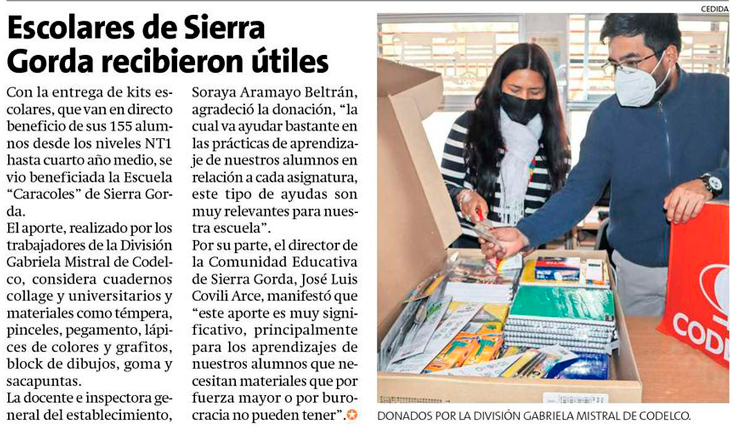 Comunidad Educativa de Sierra Gorda recibe Kits de útiles escolares - (enlalinea)