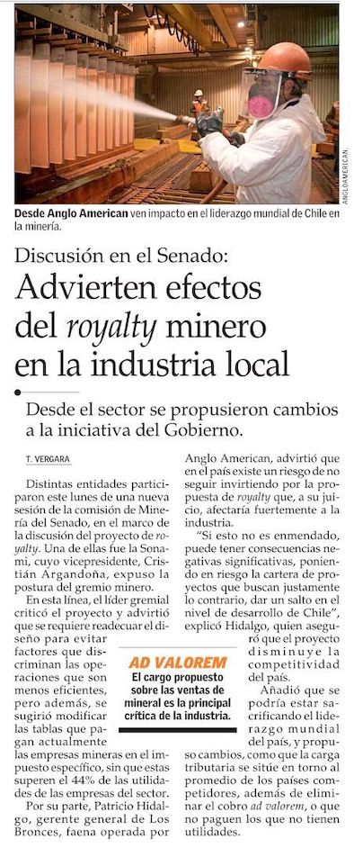 Gremios mineros critican indicaciones del Ejecutivo al proyecto de royalty - (Pulso Online)