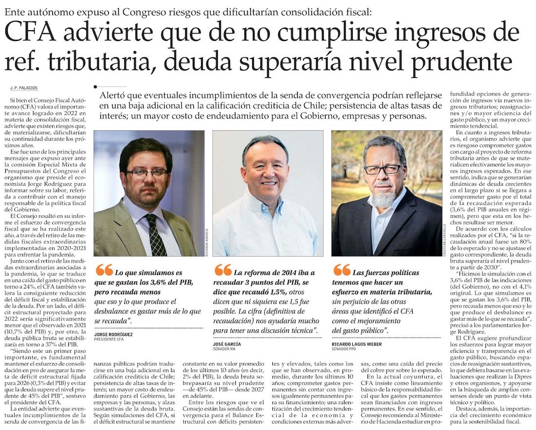 CFA: la deuda podría superar los niveles “prudentes” si la reforma tributaria no alcanza su meta - (Diario Financiero)