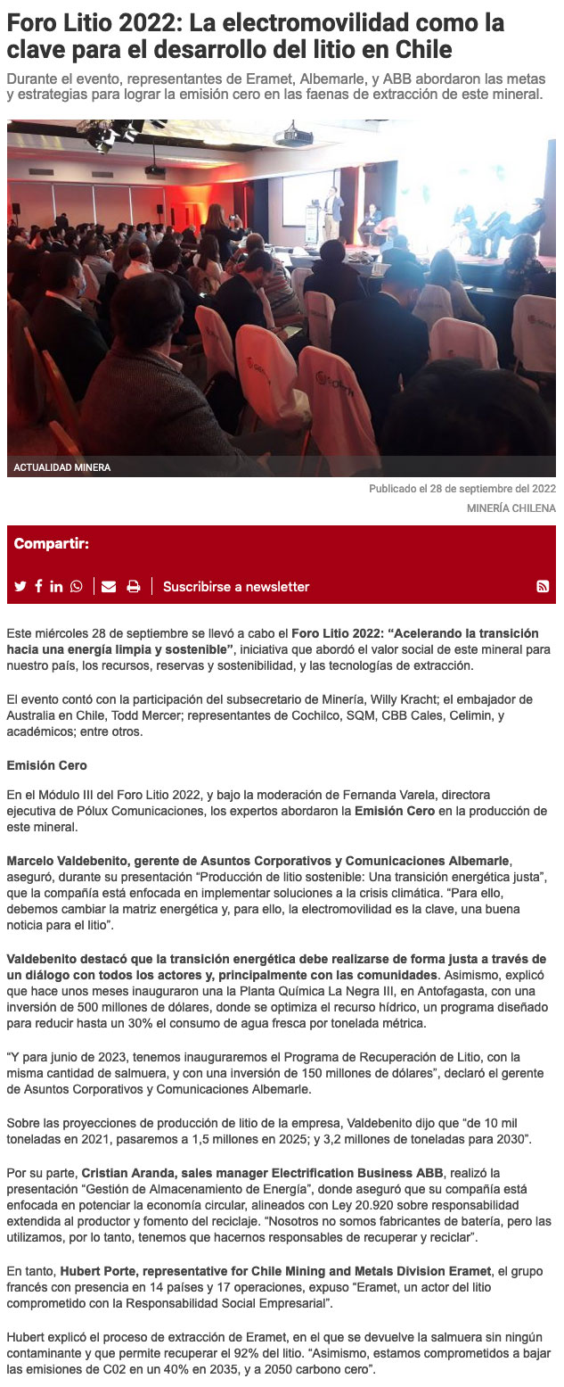 Foro Litio 2022: Embajador Australia en Chile expone la importancia de litio en la transición energética - (mch.cl)