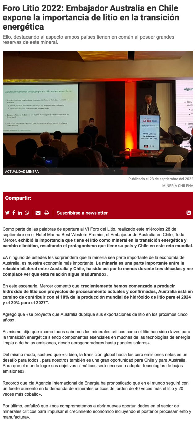 Foro Litio 2022: La electromovilidad como la clave para el desarrollo del litio en Chile - (mch.cl)