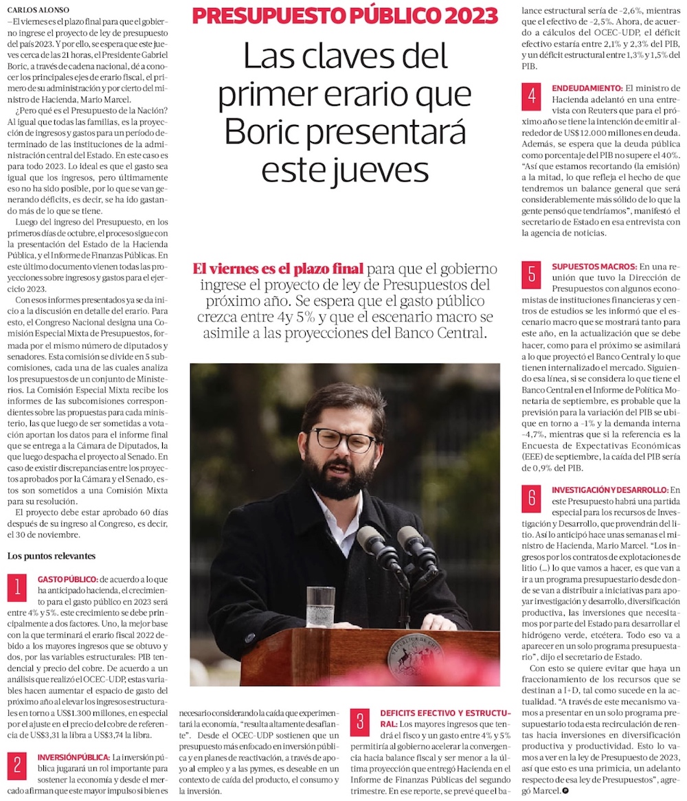 Marcel adelanta al congreso ejes del Presupuesto 2023 con prioridades en reactivación, seguridad y protección social - (Diario Financiero)