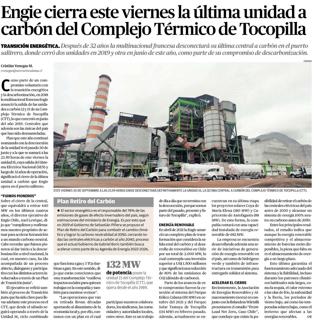 ENGIE Chile cierra su última unidad a carbón en Tocopilla - (Estrategia)
