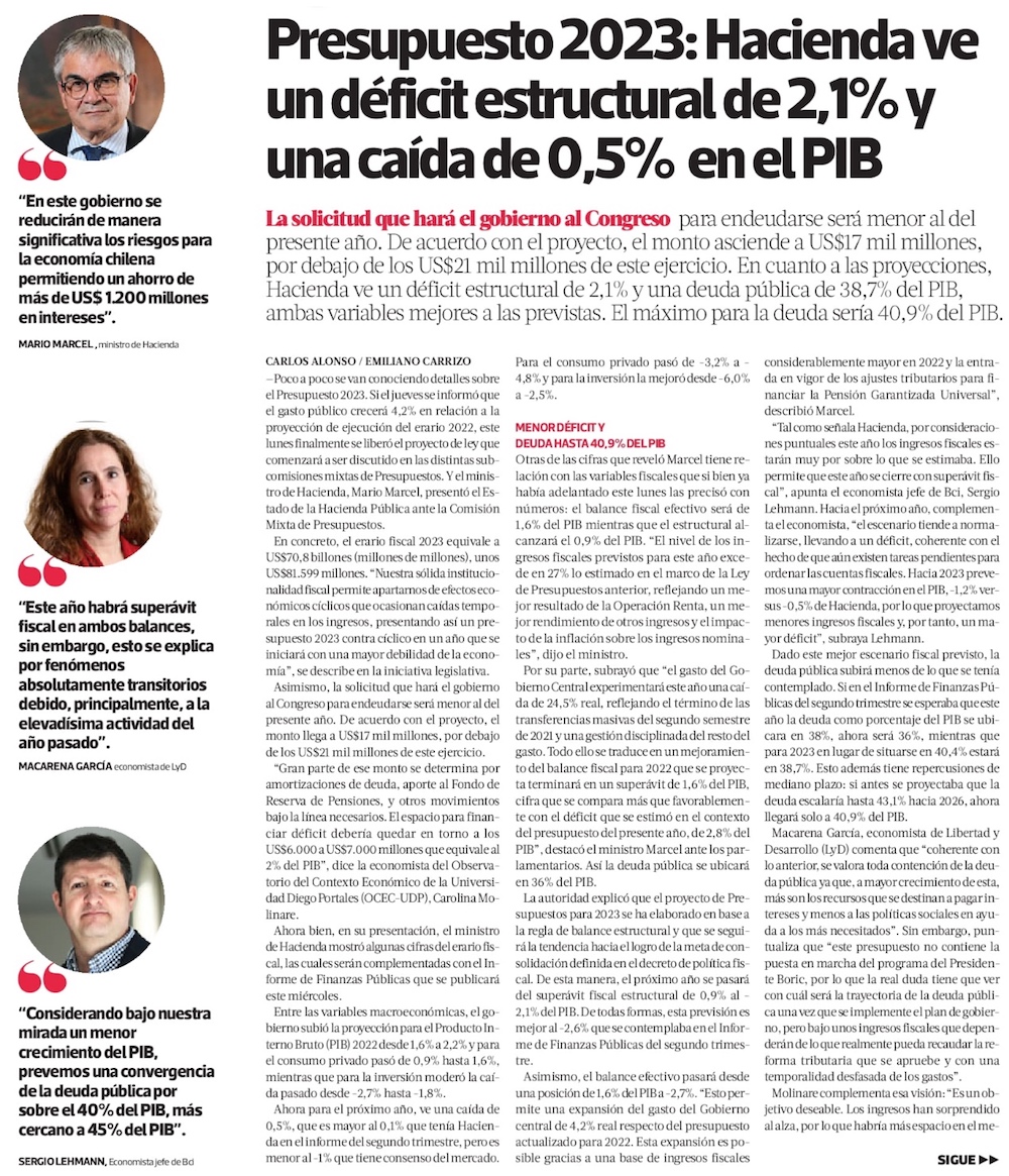 Fisco podrá emitir deuda por US$ 17.000 millones y 6.500 funcionarios podrán pasar a contrata - (El Mercurio de Santiago)