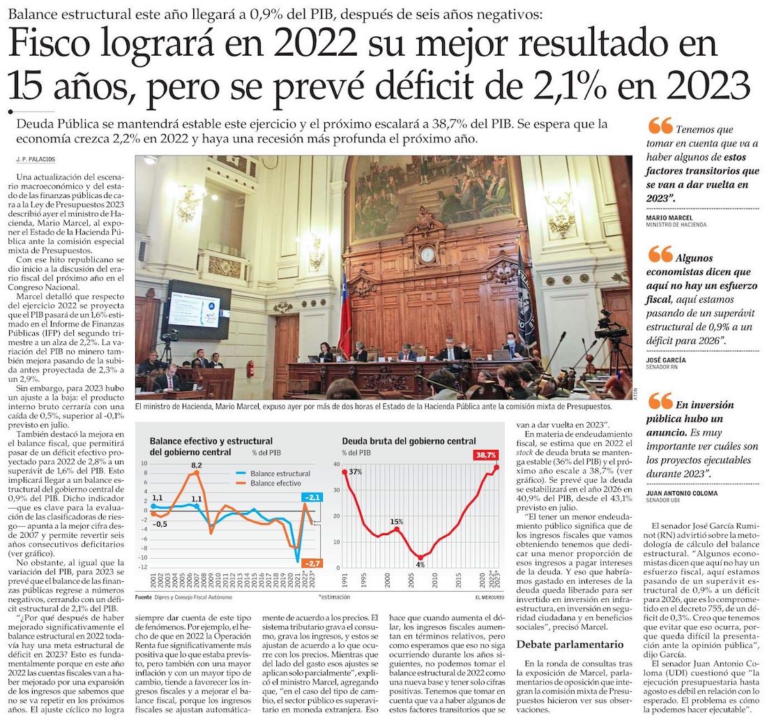 Hacienda asume caída del PIB de 0,5% en 2023: repunte se vería en el último trimestre - (Diario Financiero)