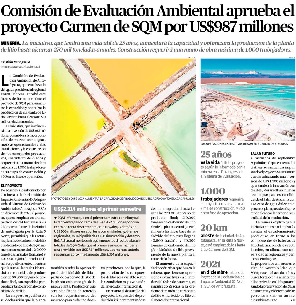 Aprueban proyecto de ampliación de planta de SQM - (El Mercurio de Santiago)