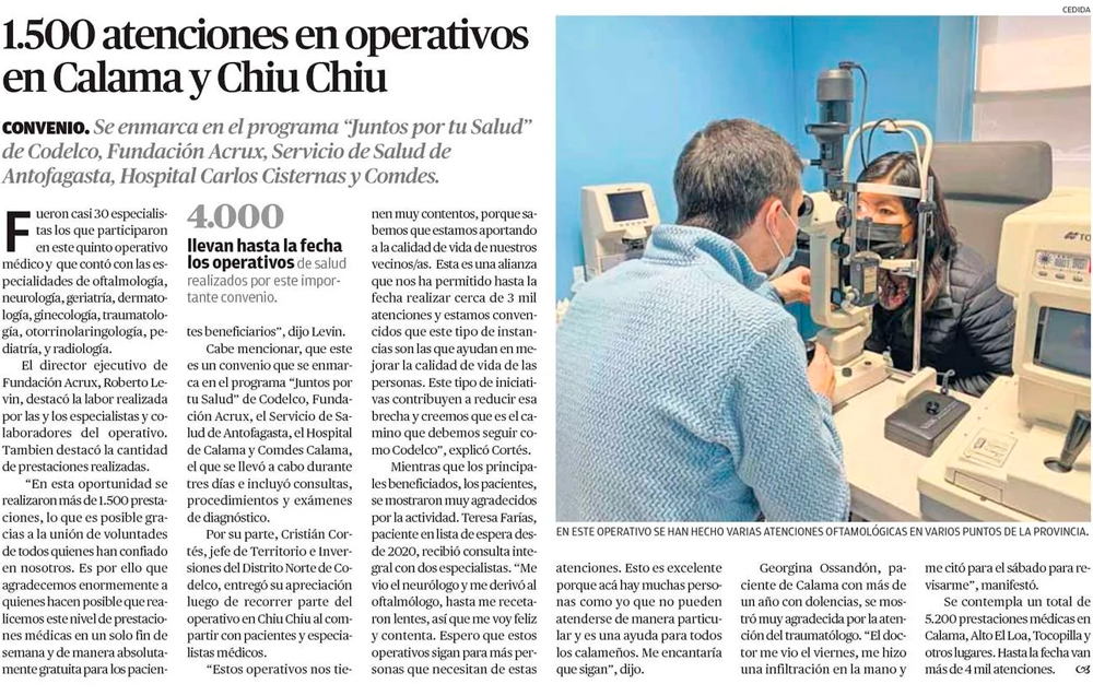 Operativo médico en Calama y Chiu Chiu entregó más de 1.500 nuevas prestaciones a pacientes en lista de espera - (calamaenlinea.cl)