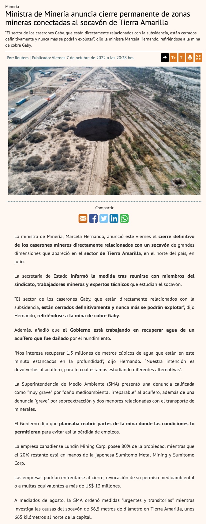 Ministra de Minería anunció el cierre definitivo del caserón Gaby de Mina Alcaparrosa - (El Diario de Atacama)