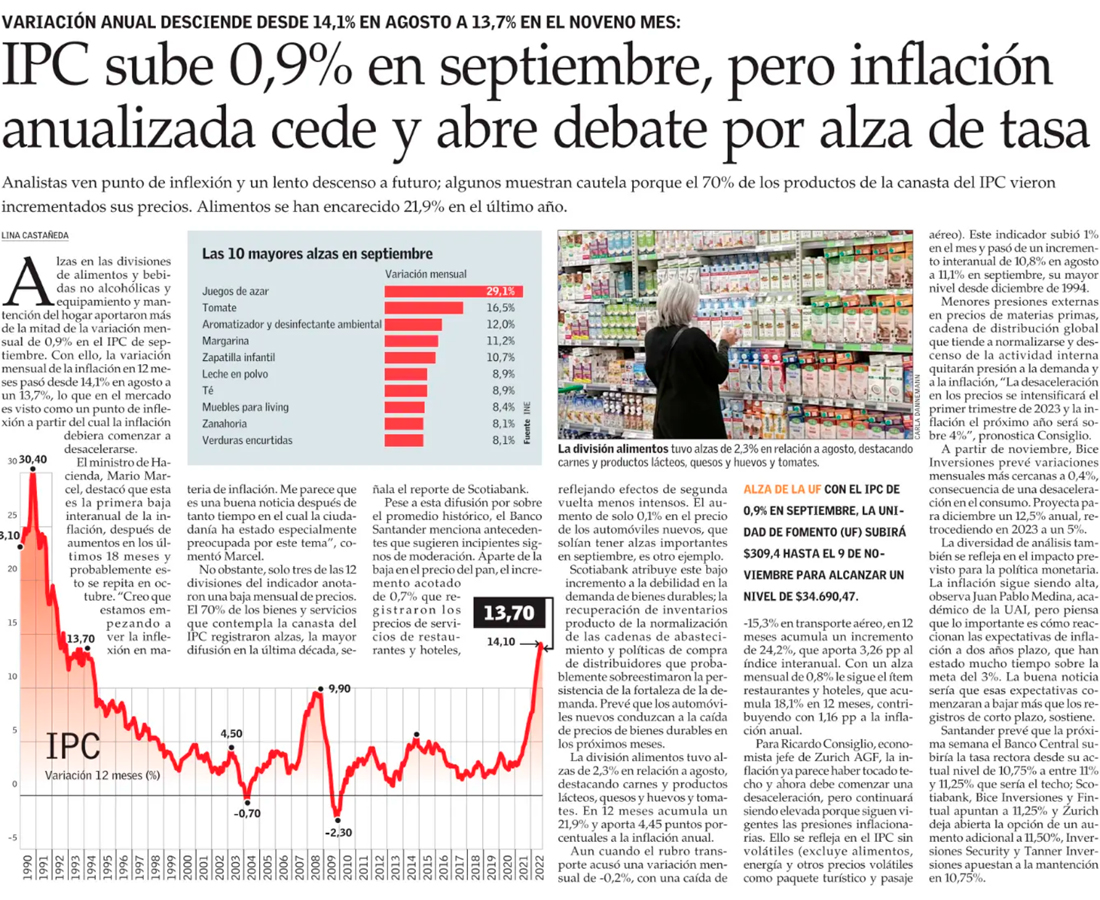 Inflación anual baja al 13,7%, pero los alimentos no ceden - (Pulso)