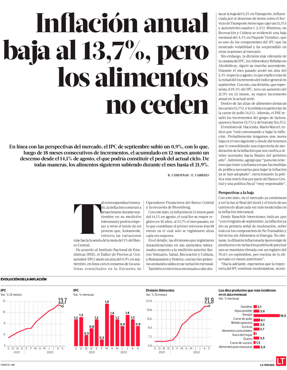 IPC sube 0,9% en septiembre, pero inflación anualizada cede y abre debate por alza de tasa - (El Mercurio de Santiago)