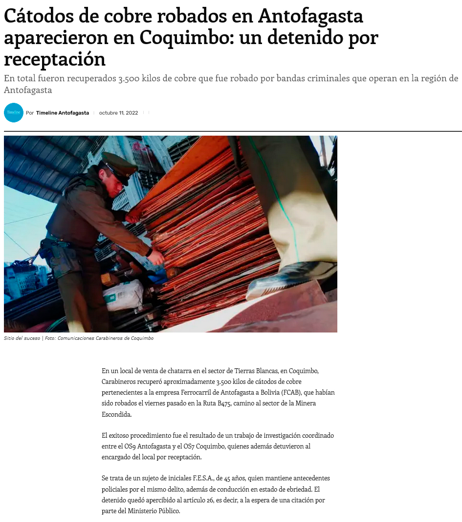 Cámara Minera llama a autoridades a resguardar la seguridad tras ataques contra FCAB - (mch.cl)
