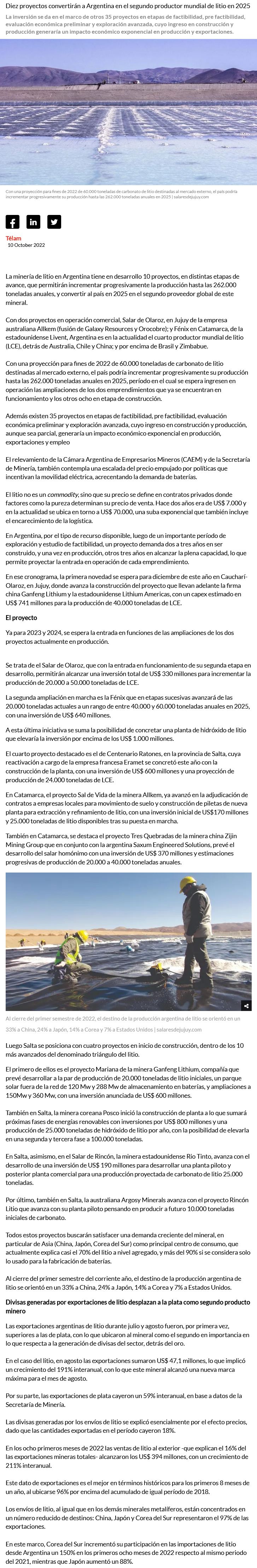 Estos son los proyectos con los que Argentina busca liderar la carrera del litio - (reporteminero)