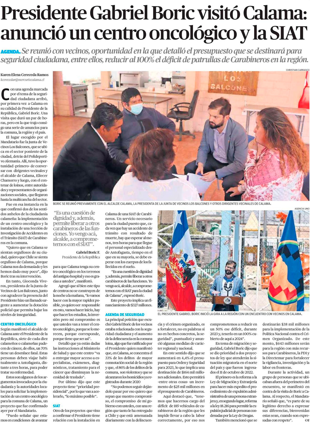 Boric llega a Calama y anuncia mayores recursos para combatir crimen organizado - (La Tercera)