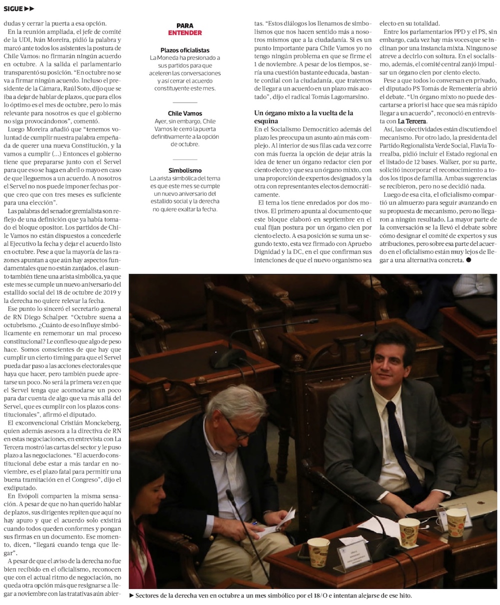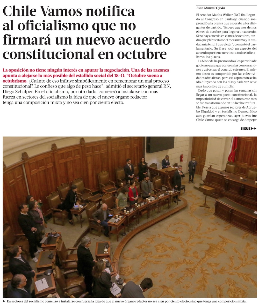 Las fórmulas que baraja la oposición en las tratativas constituyentes y que molestan al oficialismo - (La Tercera)