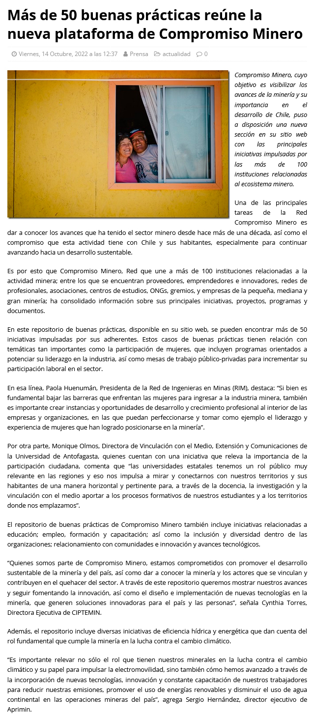 Más de 50 buenas prácticas reúne la nueva plataforma de Compromiso Minero - (elzorronortino.cl)