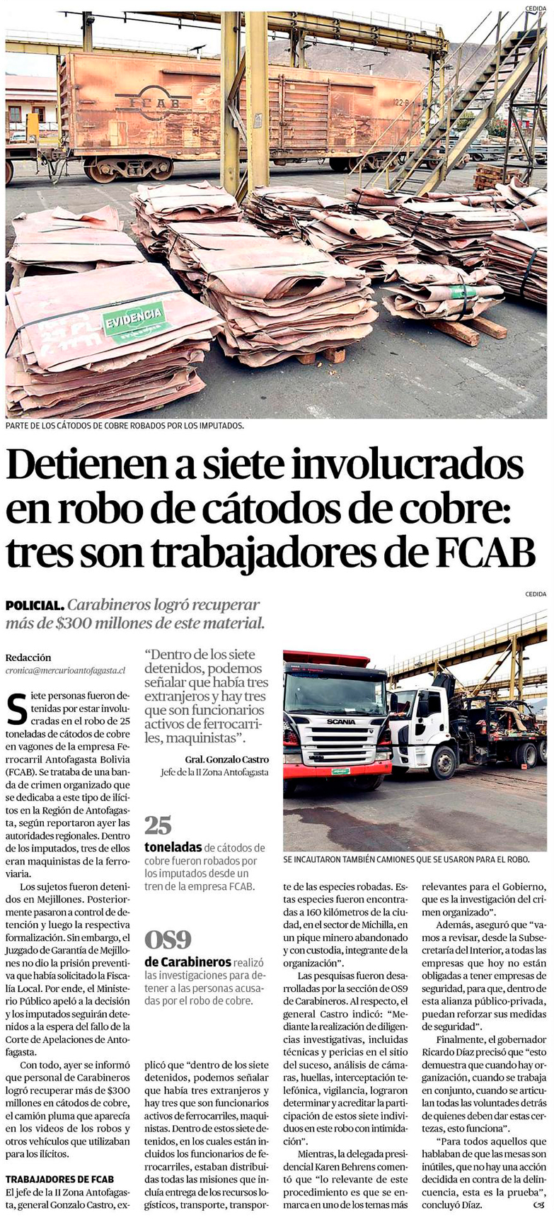 Detienen a siete miembros de banda dedicada al robo cátodos de cobre en Antofagasta - (timeline)