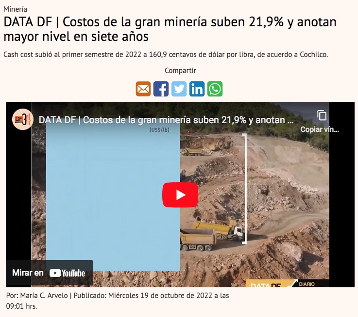 Costos de la gran minería aumentan en 28,8 centavos de dólar la libra de cobre en 2022 - (El Mercurio de Antofagasta)