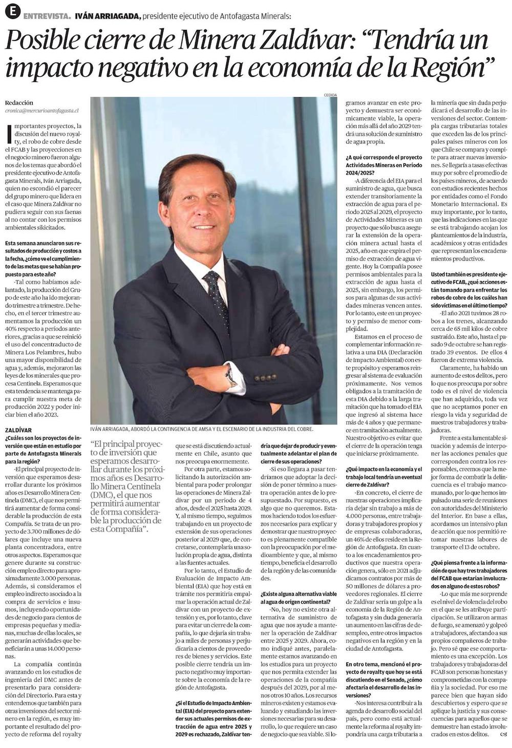 Posible cierre de Minera Zaldívar: “Tendría un impacto negativo en la economía de la Región” - (El Mercurio de Antofagasta)