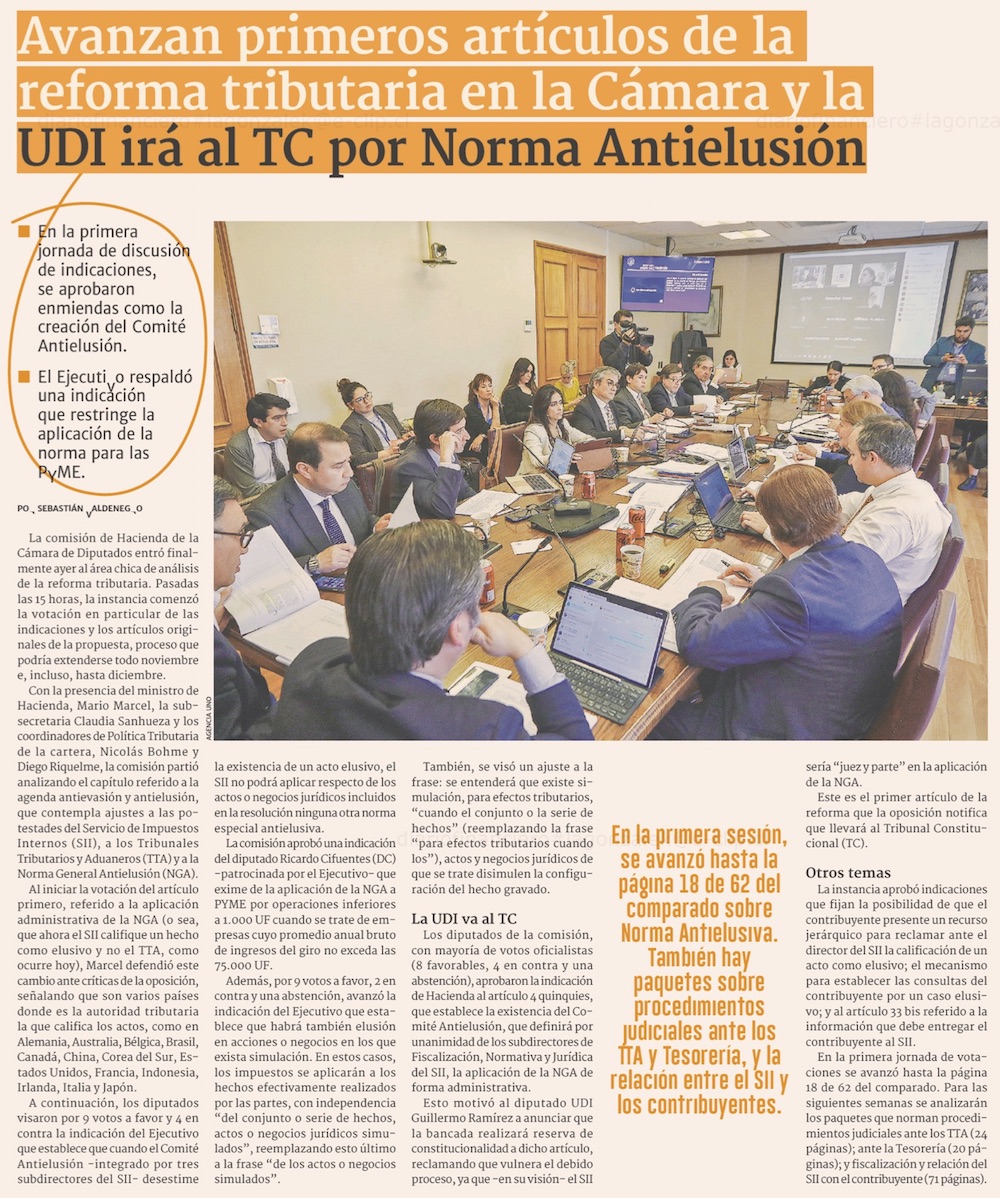 Con voto RN, comisión aprueba calificación administrativa de norma antielusión - (El Mercurio de Santiago)