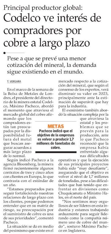 Codelco: compradores de cobre buscan acuerdos a más largo plazo - (Pulso)