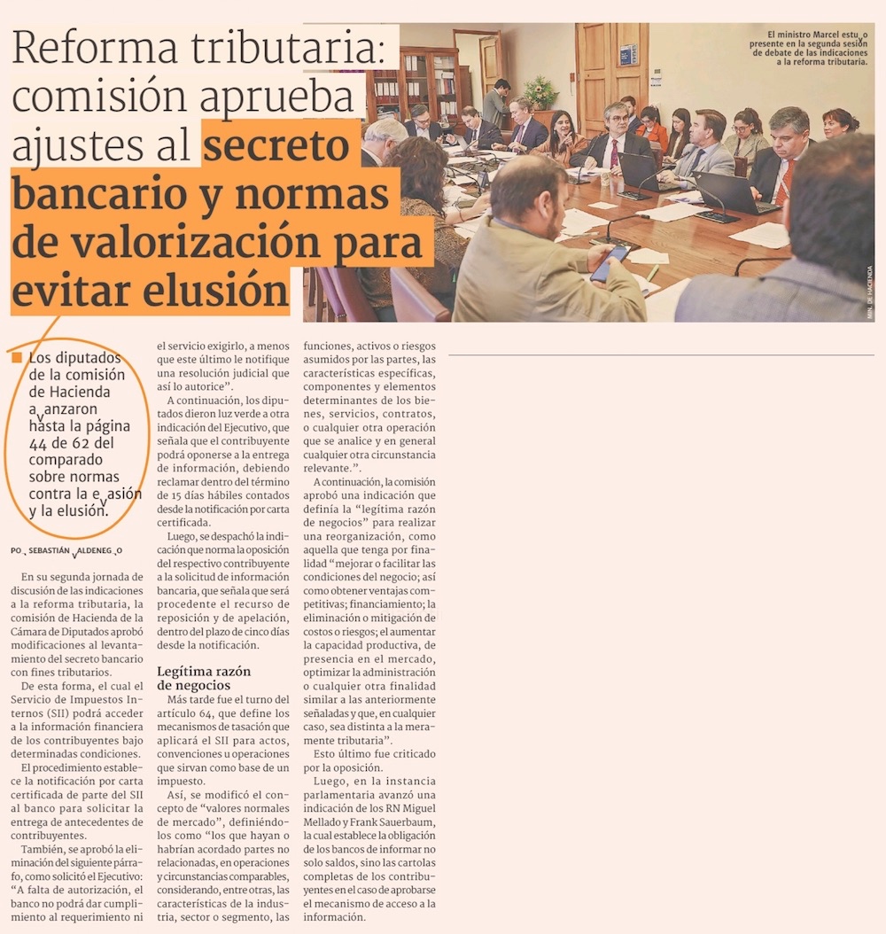 Reforma Tributaria: comisión de Hacienda de la Cámara aprueba cambios a procedimientos para el levantamiento del secreto bancario - (Pulso)