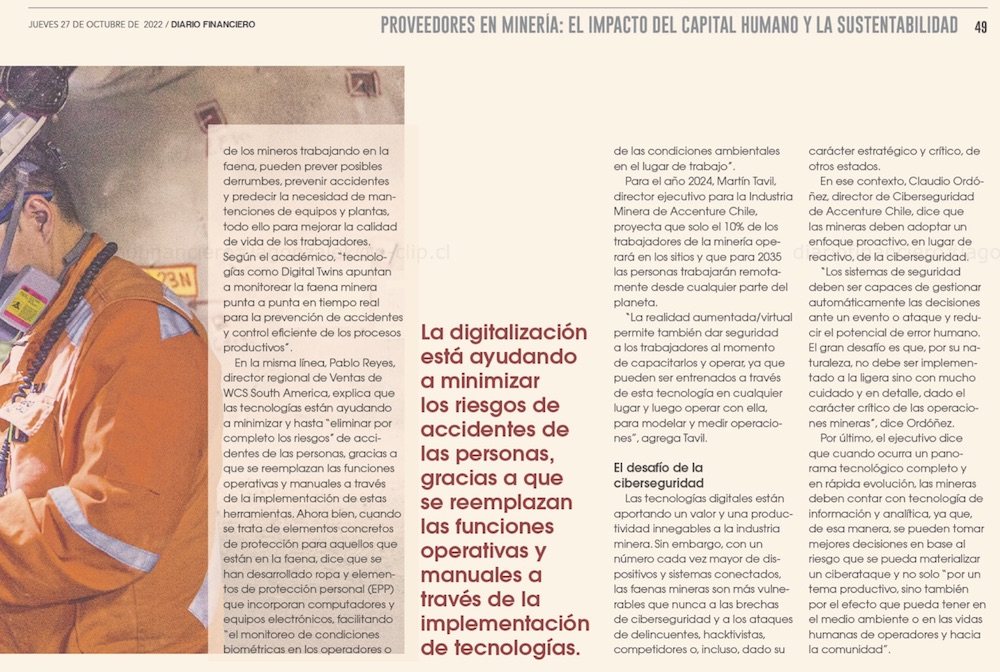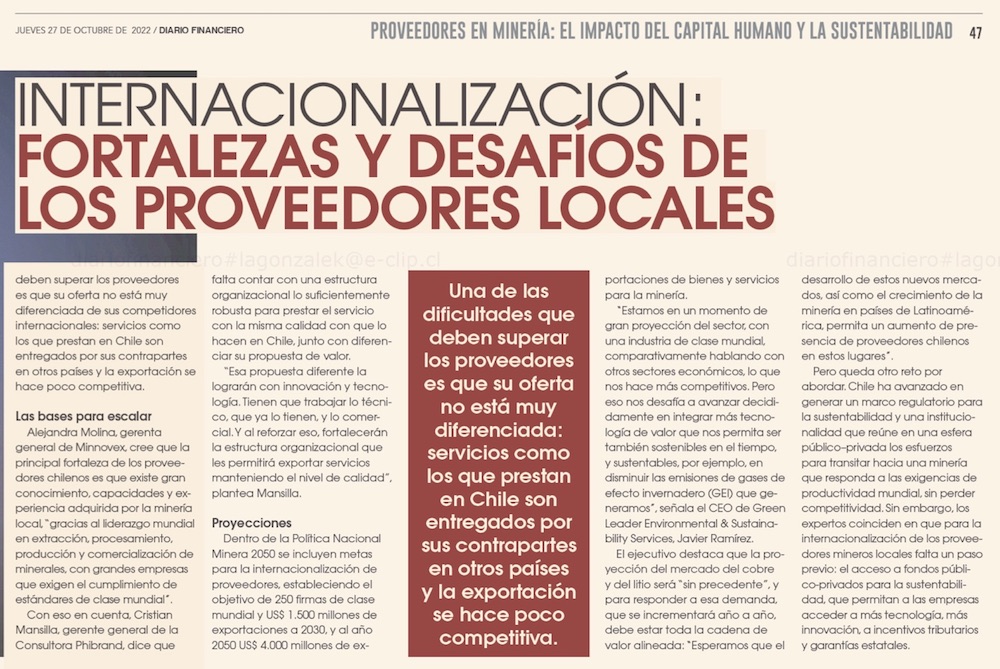 Proveedores en Minería: El impacto del capital humano y la Sustentabilidad (I) - (Diario Financiero)