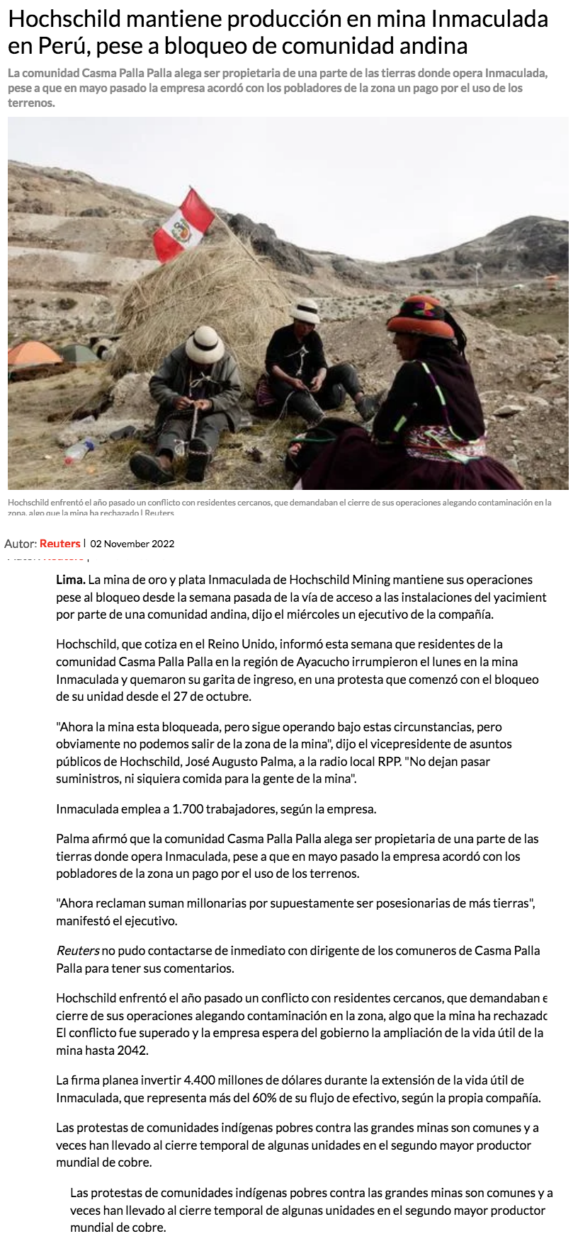 Conflicto en Perú: Hochschild reporta nuevos ataques a sus instalaciones - (reporteminero)