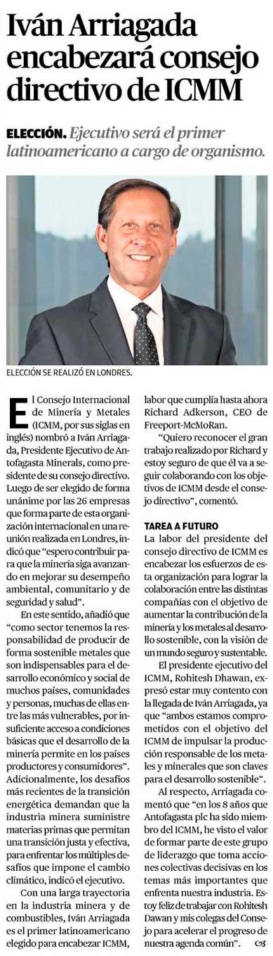 Arriagada liderará consejo de grandes mineras - (El Mercurio de Santiago)