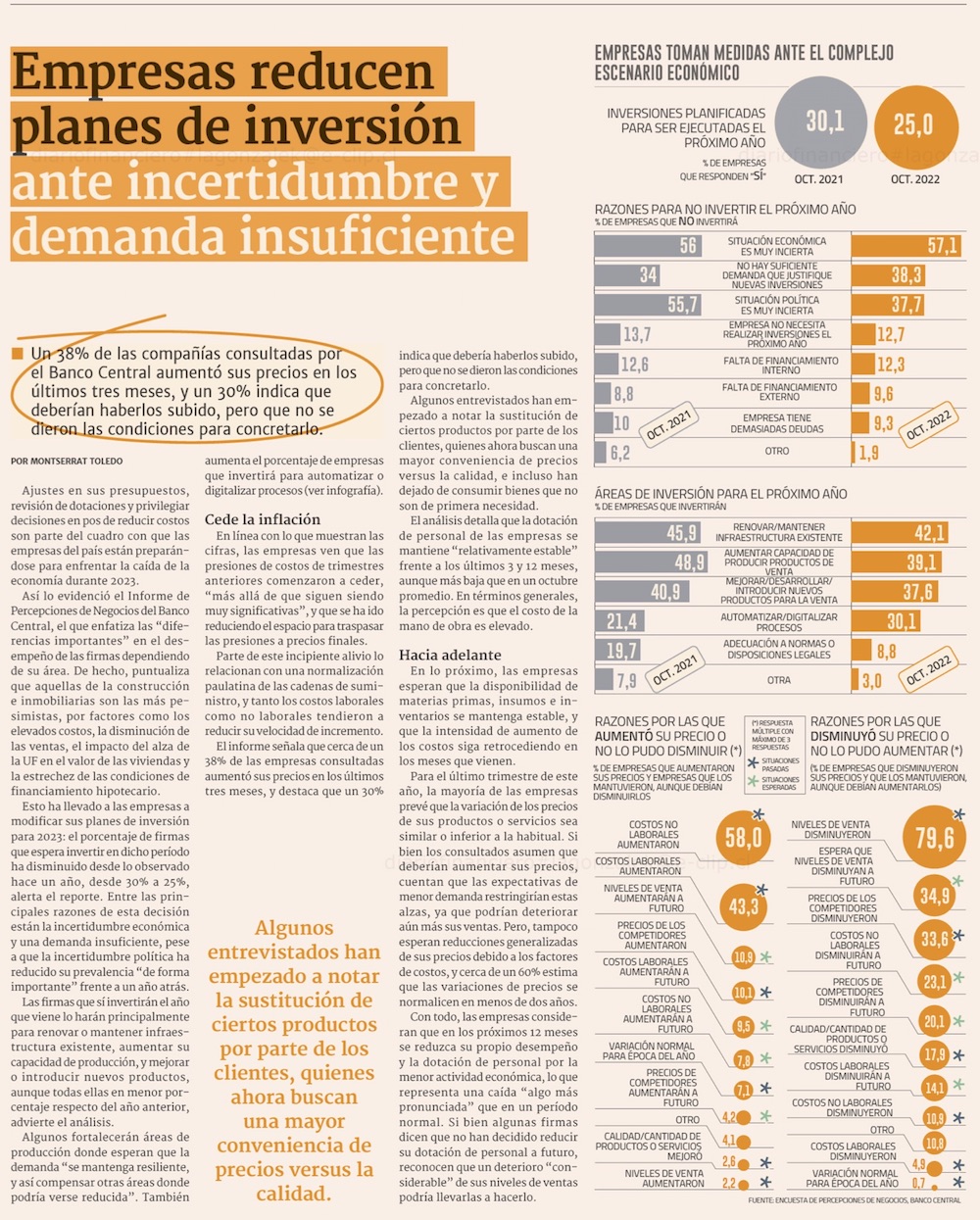 BC: Empresas reducen planes de inversión y ajustan presupuestos ante perspectivas de deterioro económico para el próximo año - (Pulso)
