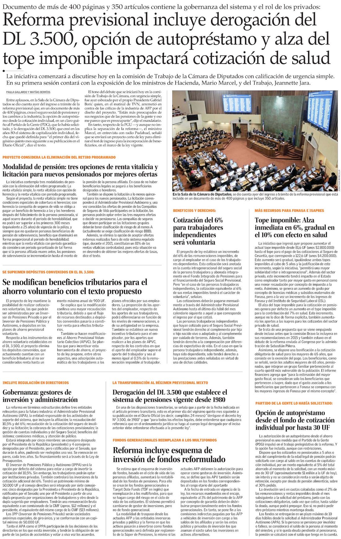 Gobierno calcula que nuevo sistema aumentará el PIB, el ahorro, el empleo y el mercado de capitales local - (Diario Financiero)