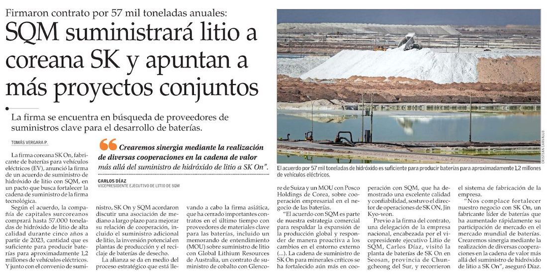 Coreana SK On comprará litio a SQM para cumplir con ley de EEUU - (Pulso Online)